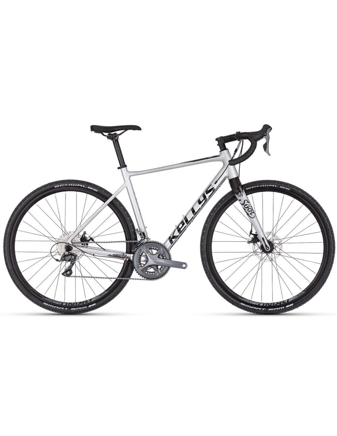 Kellys Soot 30 è una versatile bici gravel con un telaio in alluminio leggero e una forcella in fibra di carbonio. È dotata di freni a disco meccanici e di un gruppo Shimano, garantendo cambi di marcia fluidi e un'ottima controllo su diverse superfici.