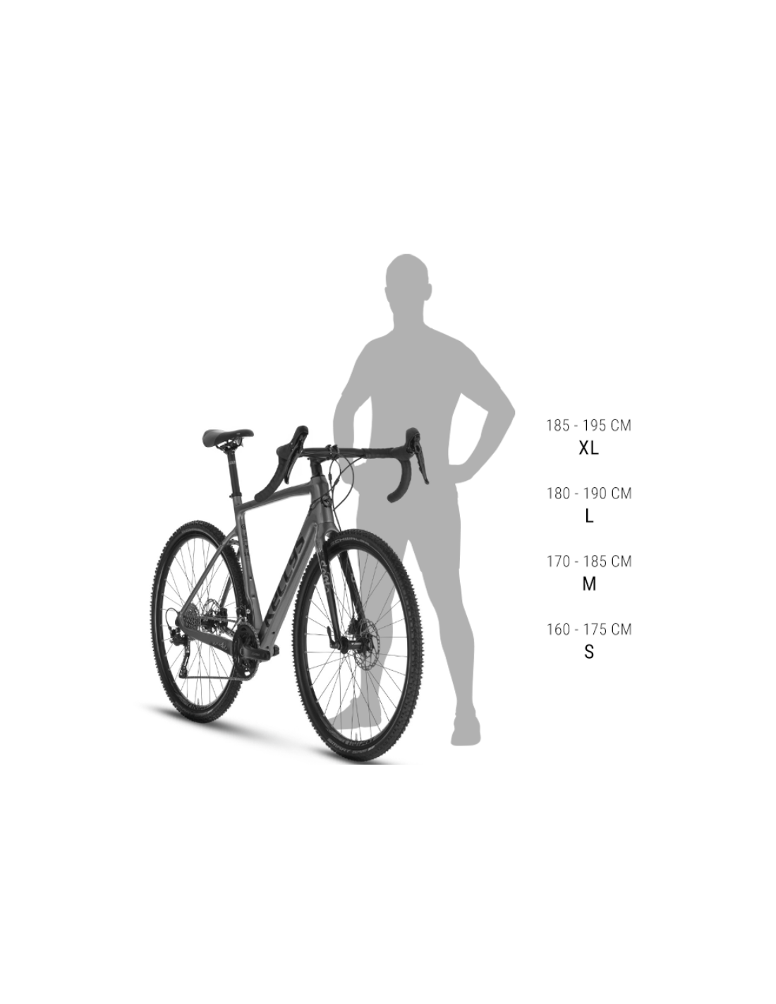 Il manubrio tipo GravelBar con un diametro di 31.8 mm è disponibile in diverse larghezze, consentendo di adattarsi alle esigenze individuali dell'utente. Le dimensioni del manubrio sono 400 mm per S, 420 mm per M, 440 mm per L e 460 mm per XL. Le manopole KLS bar tape offrono comfort e sicurezza nella presa, essenziali durante i percorsi più lunghi. Il forcellino KELLYS Carbon Disc con sterzo tapered da 1.5 pollici e montaggio flat mount per freni a disco garantisce un'eccellente rigidità e precisione di guida, mentre l'asse passante da 12 mm aumenta la stabilità della bici.