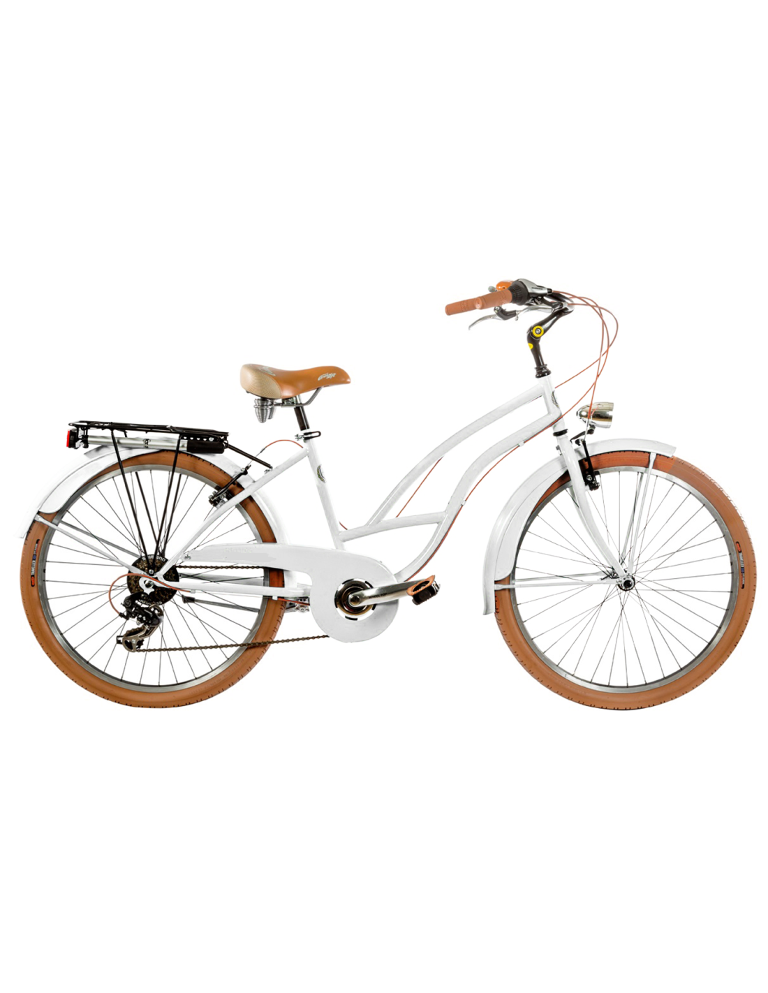 La CR26D è la city bike da donna dallo stile unico e retrò, ispirata al classico design americano Cruiser. Con ruote da 26", un comodo telaio e un look inconfondibile, questa bici è ideale per chi cerca comfort, eleganza e praticità nella mobilità quotidiana.