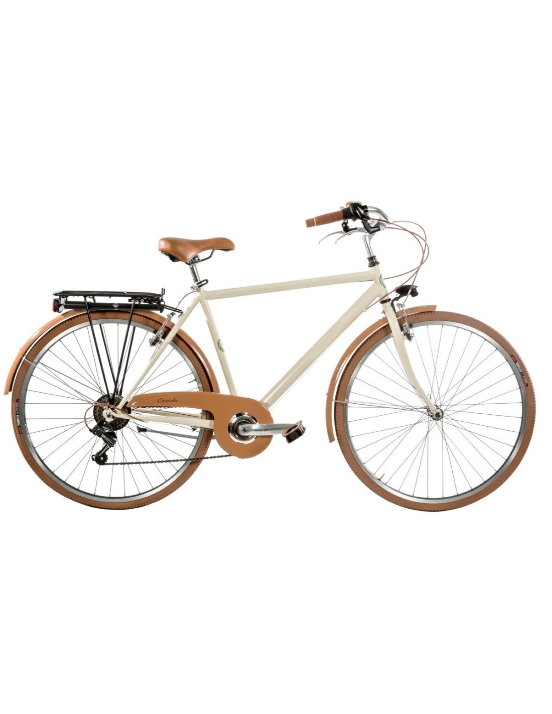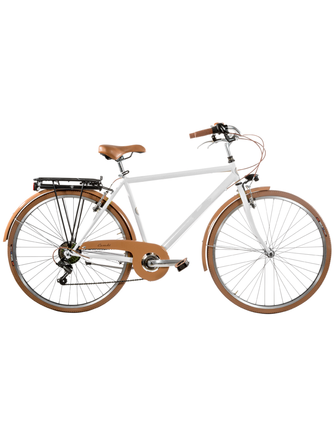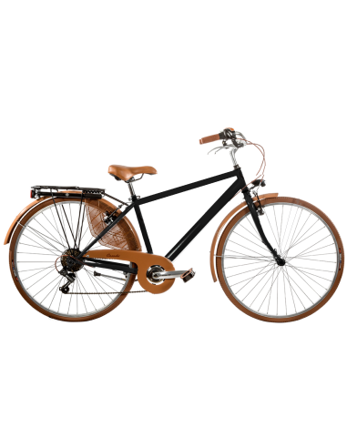Il telaio in acciaio, robusto e affidabile, è arricchito da dettagli in alluminio che donano leggerezza e resistenza. Le ruote da 28" rendono la pedalata fluida e comoda, mentre le rifiniture marroni – copertoni, sella e manopole – conferiscono un look retrò elegante e raffinato.