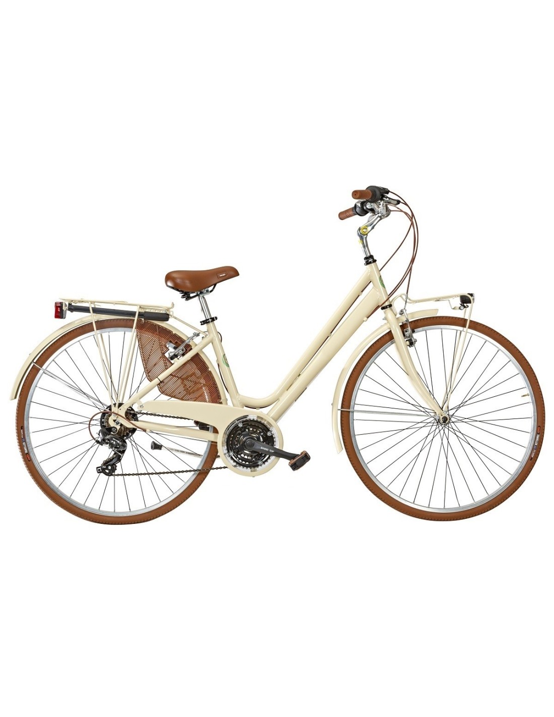 BICI DONNA TELAIO ALLUMINIO LINEA VINTAGE MISURA 28 BICICLETTA CAMBIO 21V CITY BIKE VINTAGE COMPLETA ACCESSORI DETTAGLI MARRONI