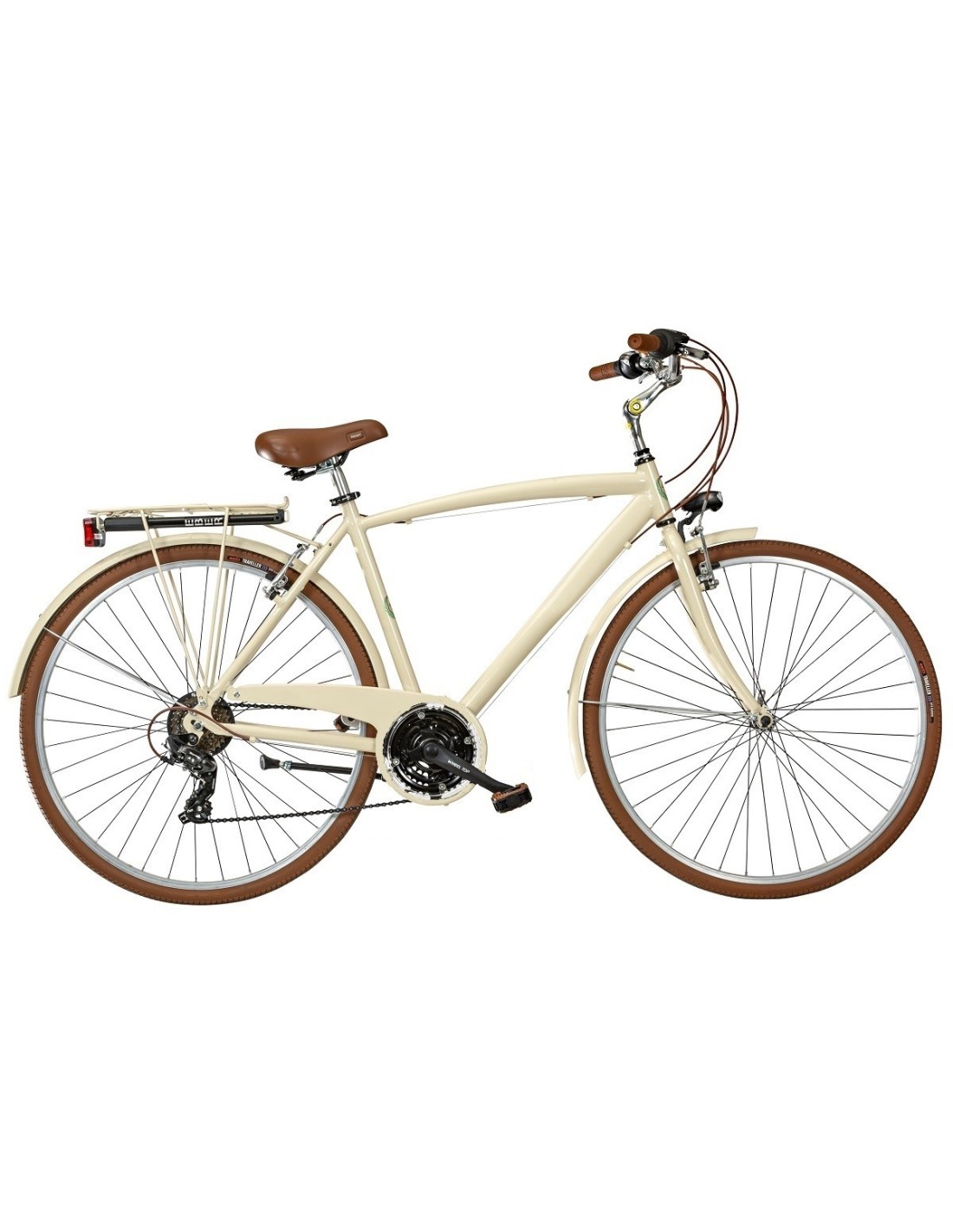 BICI UOMO TELAIO ALLUMINIO LINEA VINTAGE MISURA 28 BICICLETTA CAMBIO 6V CITY BIKE VINTAGE COMPLETA ACCESSORI DETTAGLI MARRONI