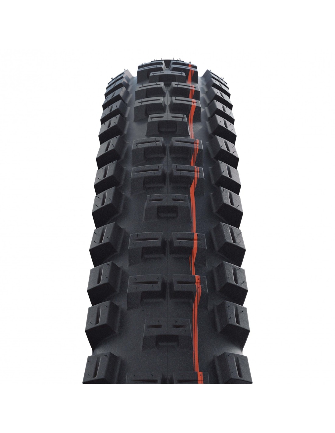 BIG BETTY versione SUPER TRAIL mescola SOFT Big Betty è tornato! Dotato di tutto ciò che la moderna tecnologia degli pneumatici ha da offrire. Un tuttofare per il Downhill e l'Enduro in condizioni di terreno secco o umido. Big Betty funziona perfettamente sulla ruota posteriore in combinazione con la nostra amata Magic Mary.  Lunghi tasselli di frenata rinforzati per la massima trazione di frenata.  Tasselli esterni della spalla estremamente stabili per un eccellente grip in curva.  Battistrada aperto e aggressivo per un eccellente grip ed effetto autopulente.