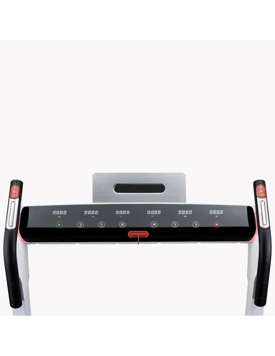 Il quadro di comando del nuovo JK SC48 è un touch-pad ad alta definizione con 6 display a LED bianchi, per mantenere sotto controllo tutti i parametri dell’allenamento cardio quali: tempo, distanza, velocità, inclinazione, calorie bruciate, n° passi, frequenza cardiaca.Il tapis roulant JK SC48 è dotato di due ricevitori integrati: per collegare i propri devices elettronici (APP, social e musica); e 5.3 kH per la rilevazione della frequenza cardiaca tramite la fascia cardio toracica optional acquistabile separatamente.